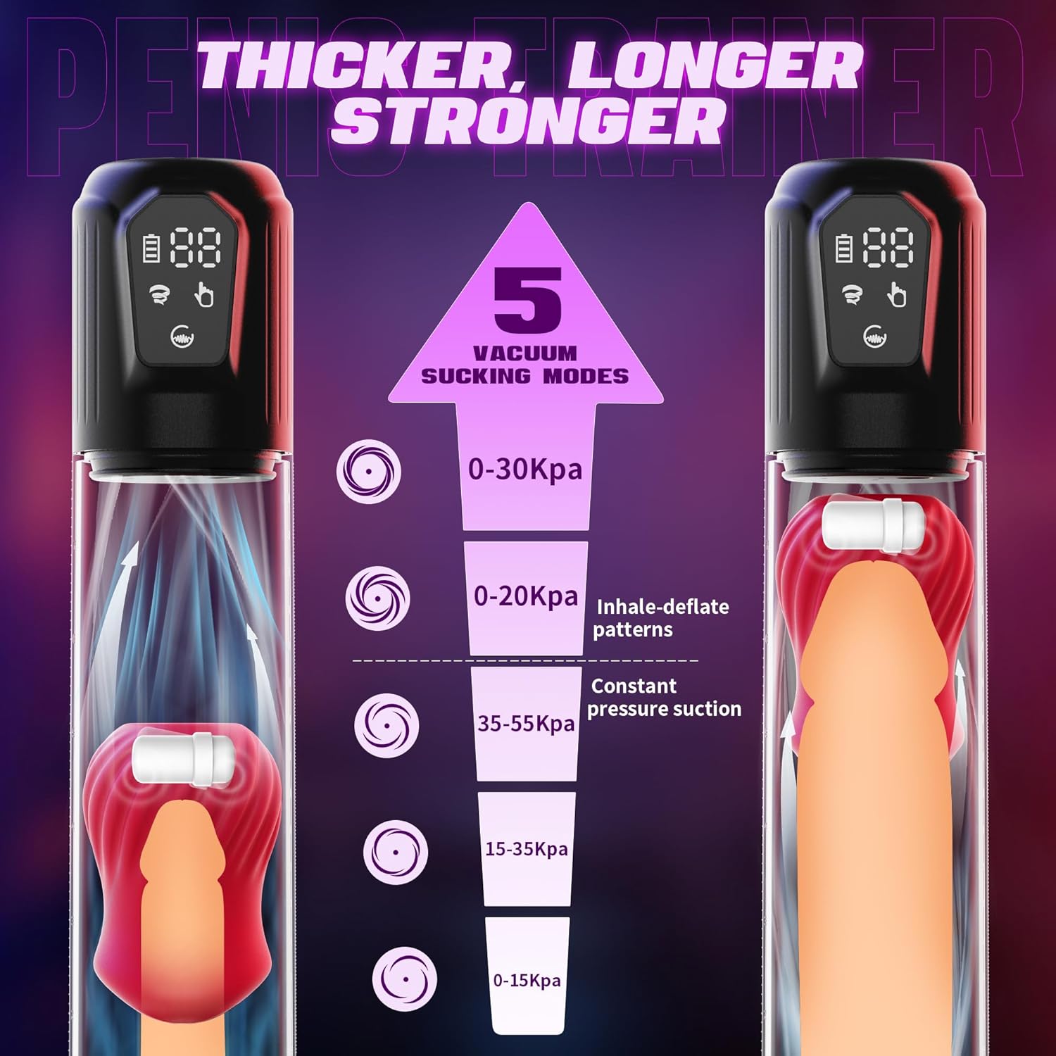 Silicone Material Rose Shaped Inner Cup & 2 Replacement Penis Sleeves - The inner rose & mouth shaped, make this mens sex toy more realistic, it massages and wraps tightly around the penis in 360°, and by manually controlling the suction you can perfectly replicate the intimacy of oral sex. Equipped with 2 sleeves for this penis enlargement extend pump, 2 silicone cock sleeve of different sizes for you to choose from, offering you more pleasure options according to your own needs.