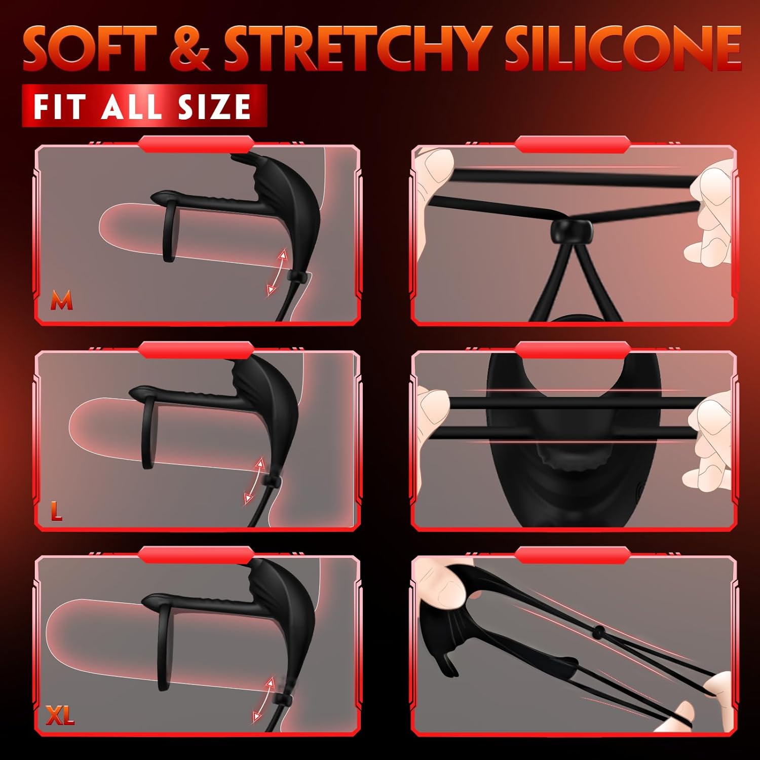 3 IN 1 Adjustable Penis Ring Male Vibrator with 7 Vibration Modes