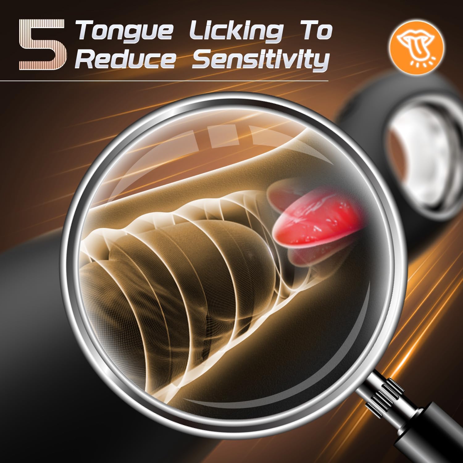 Enhance Endurance with 10 Vibration and 5 Tongue Licking - Combine vibration and tongue licking functions, the male sex toys work well to reduce glans sensitivity and enhance penis endurance. Of course, you can use vibration or tongue licking alone. Either way, with long-term use, it will get stronger, longer, and harder than every time before. men's sex toy
