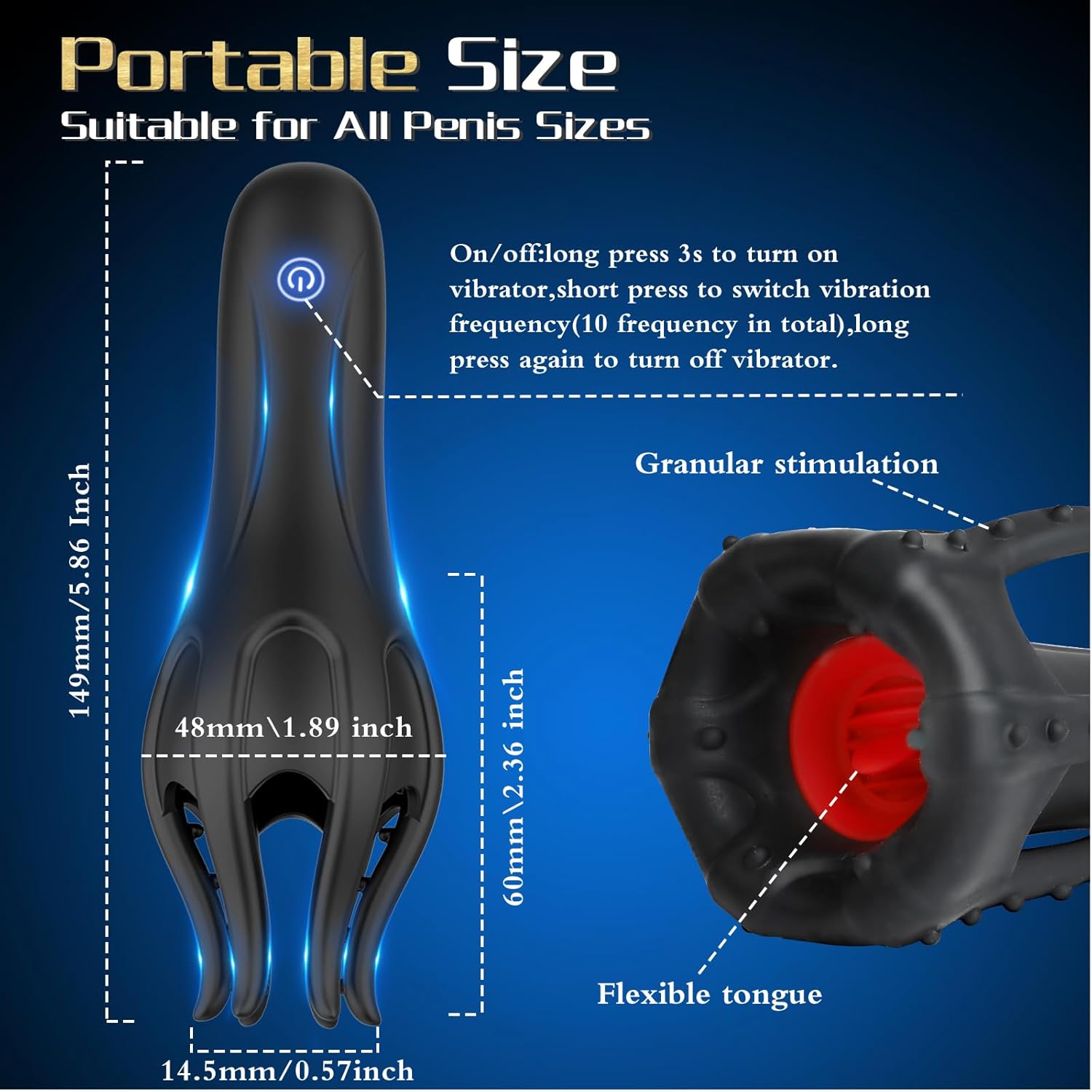 USB Rechargeable & Portable Size - This mens vibrator can be fast charged with an USB charging cable, takes about 2 hours to fully charge, and can work for up to 1 hour, please fully charge before use for the best experience. And its overall length is 5.86inch, the large size will bring you ultimate experience. However, please choose the right size.