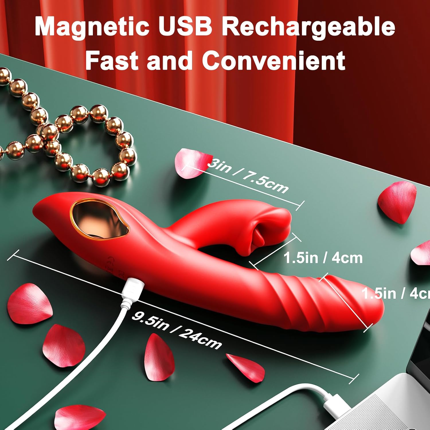 4 IN 1 G Spot Vibrators Tongue Clitoral Stimulator with 10 Vibrating 5 Thrusting & Licking Biting
