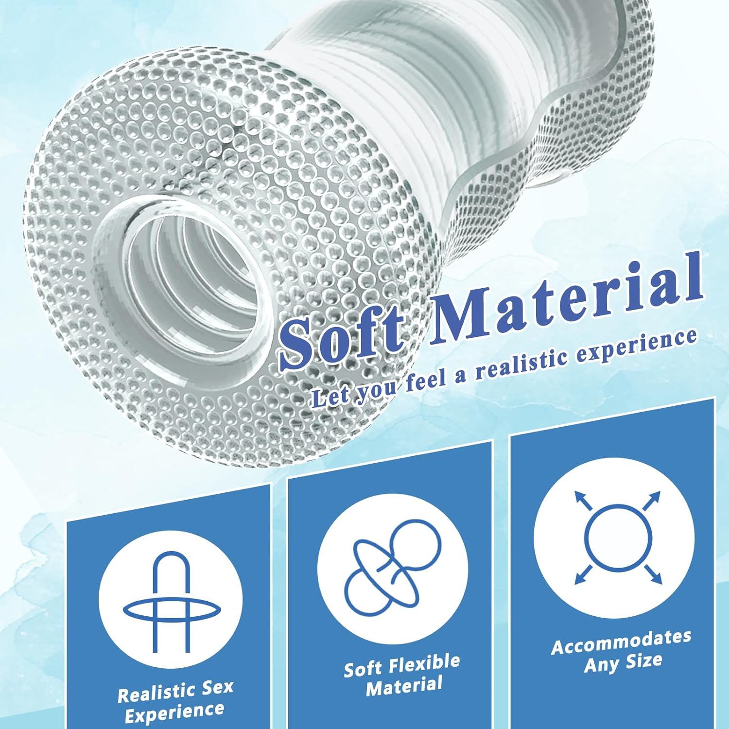 • Soft TPE Material Transparent Masturbator for Realistic Feel:this male masturbator is made of Soft TPE Material. The flexible material wraps comfortable around you, delivering comfortable pressure and satisfying tightness. It’s gentle, flexible, and perfect for a lifelike solo experience.