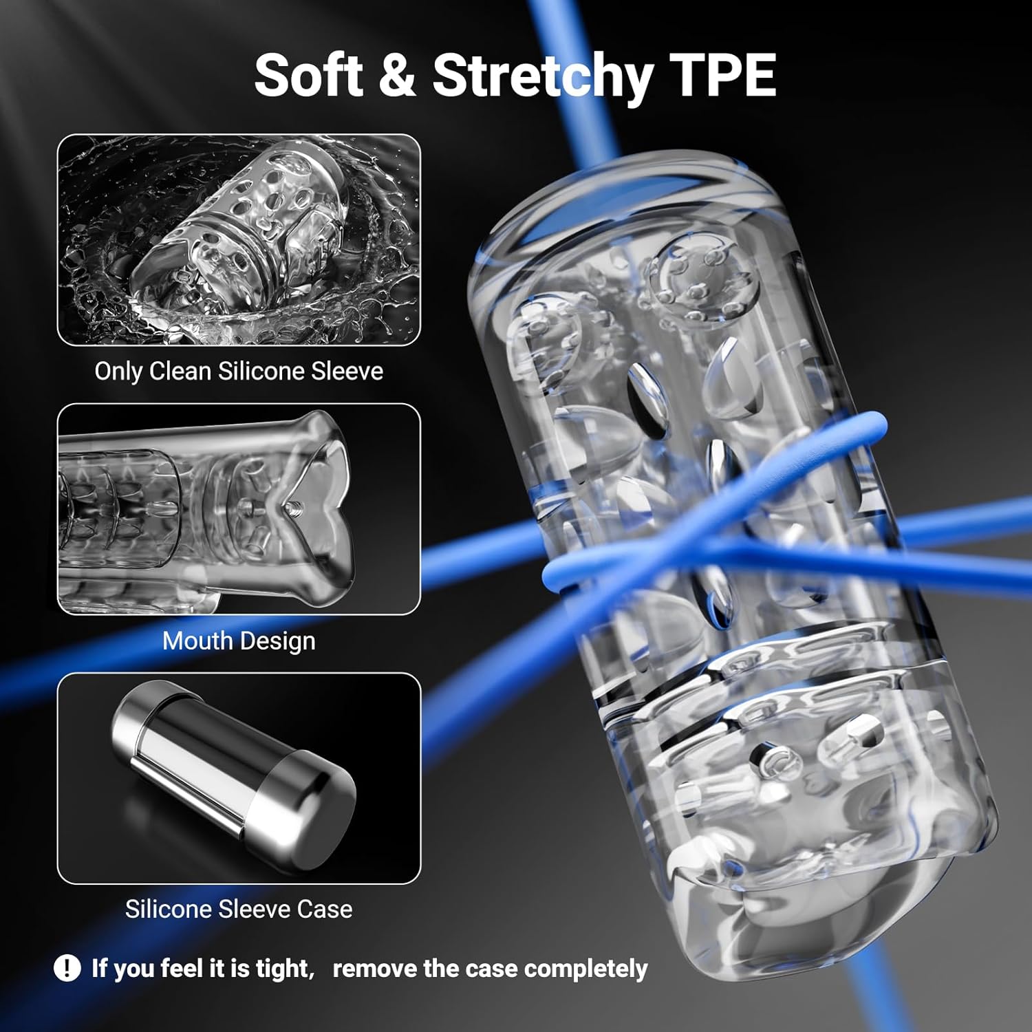 • Transparent Soft Skin-friendly Silicone: The mens sex toys grafted from safe, skin-friendly silicone, the pocket pussy features a 3D textured interior and mouth design. The removable silicone sleeve makes cleaning easy, while the protective shell ensures durability(Please remove all shells when in use). Its transparent silicone adds a visually stimulating experience during use