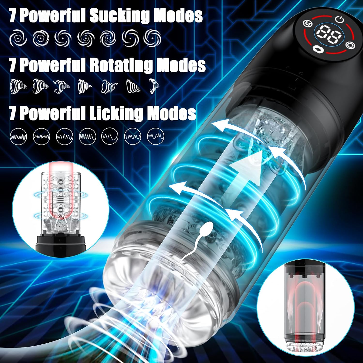 Upgraded Transparent Shell Design Sex Toys : This sex toys not only features a transparent shell design but also has an LCD display that makes you to visualize your POWER and record the most suitable pleasure mode for you. With a penis pump equipped with 7 powerful rotating and sucking functions, features a 3D realistic transparent textured lining for pleasant and natural feeling. Improve the jamming problem on the male masturbator market, leaving you immersed in pleasure.