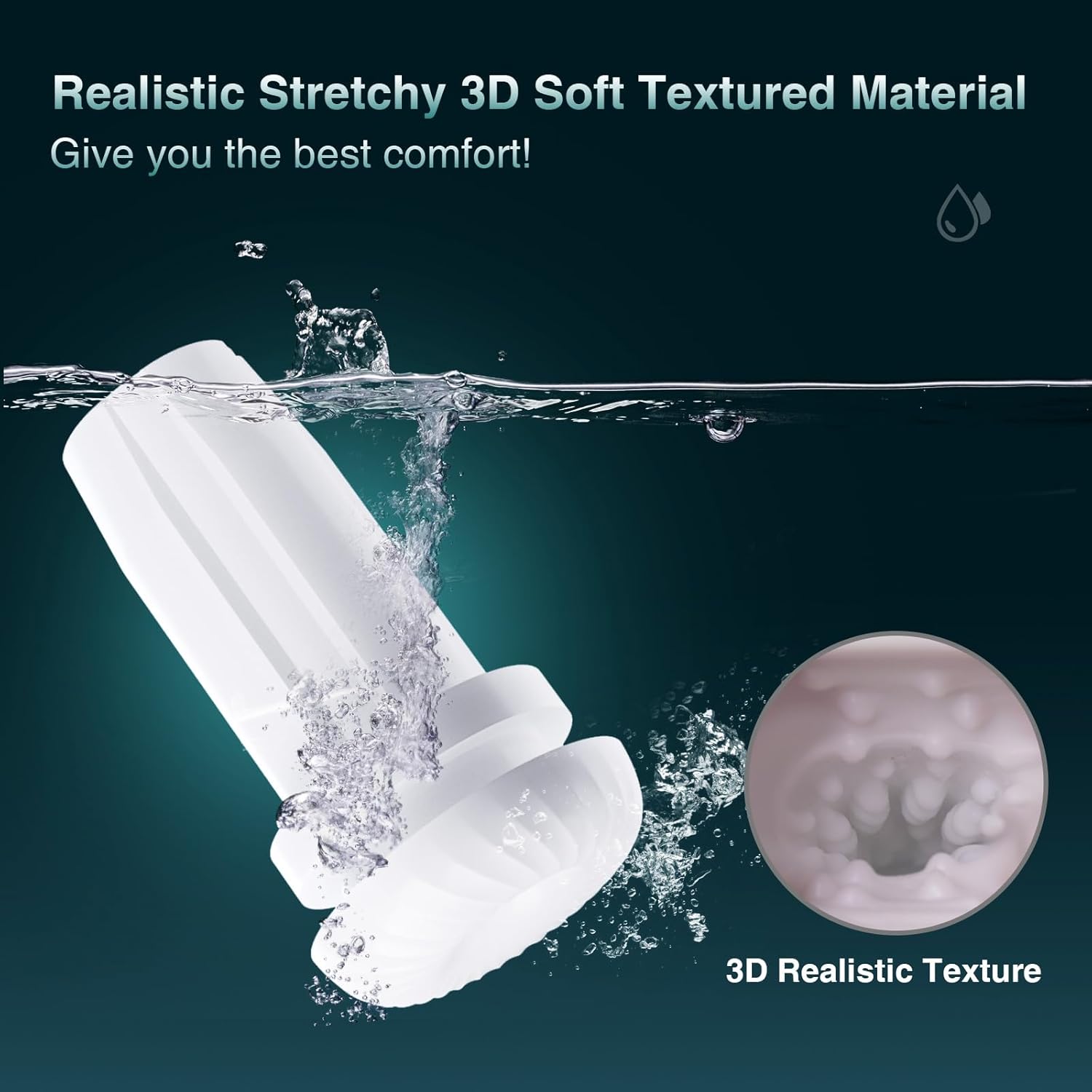 • 3D Textured Sleeve & Soft TPE Material: The male masturbator's 3D textured sleeve, made of soft TPE, features spiral pleats and convex particles for enhanced stimulation. It can also be used as a training tool or penis pump