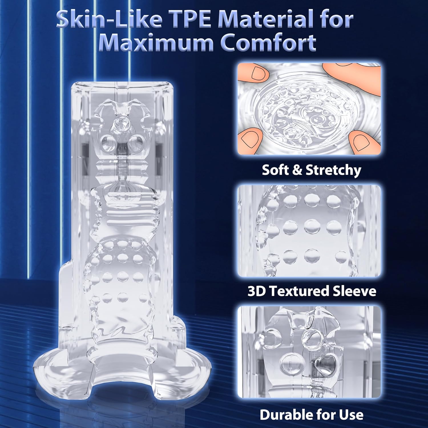 • 3D Textured Channel & Full Coverage: Indulge in an intense experience courtesy of our male toy's intricately designed 3D textured channel. This interior features a maze of finely detailed textures and contours, emulating the sensations of genuine intimacy. Notably, this design of adult sex toys provides complete coverage of the penis, enveloping you in a world of pleasure that adeptly challenges your boundaries and elevates your sensory perception