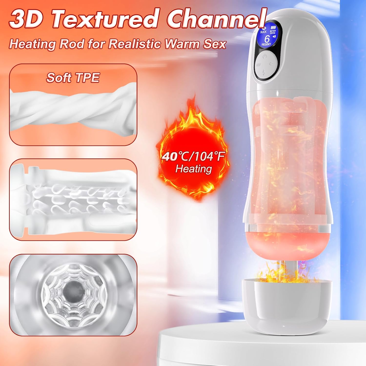 • 【Upgraded Heating Male Masturbator】Compare to traditional male sex toys, our blowjob machine adult toys has a heating function which heats up to 104℉/40℃ in 3~6 minutes so you can enjoy the real human body warmth.