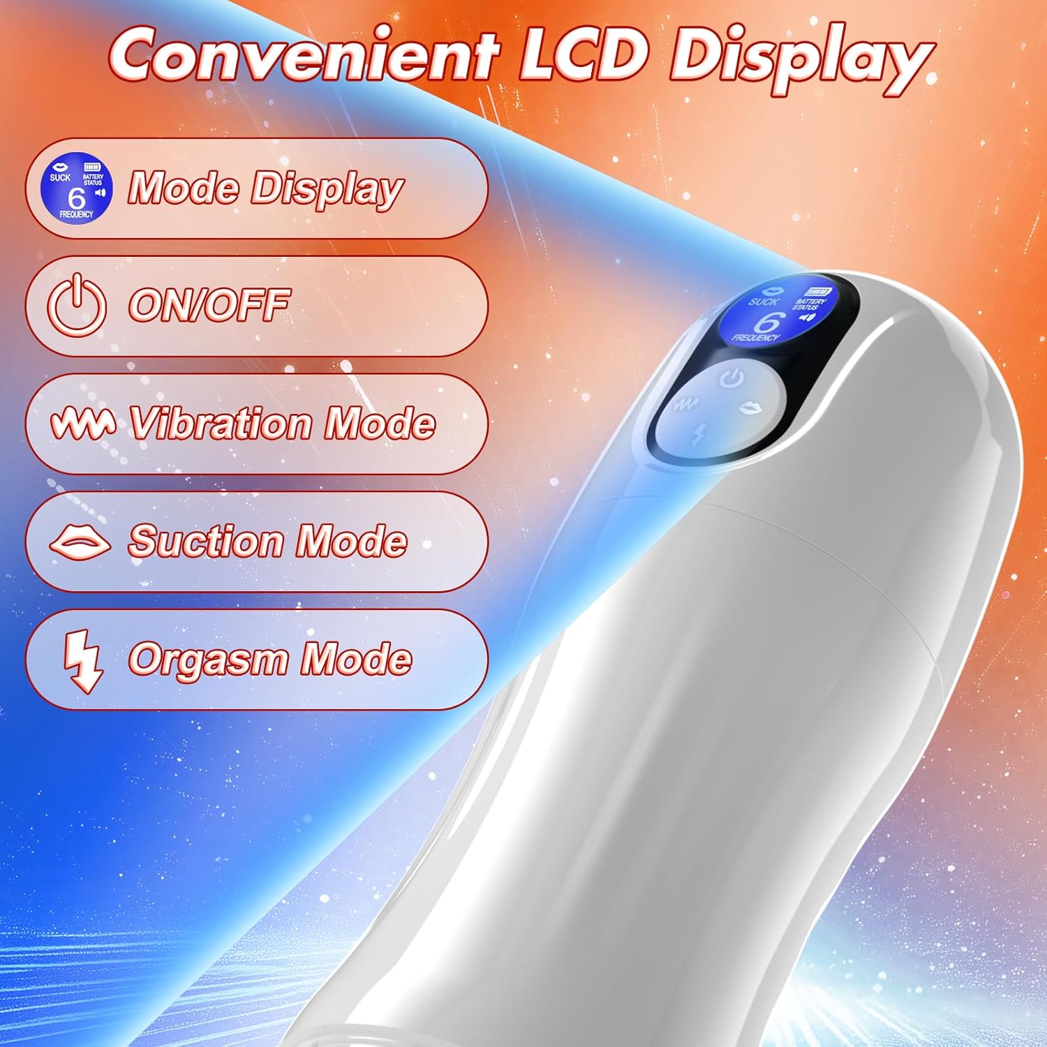 • 【Male Toys with LCD Display】Our male masturbators designd with user-friendly LCD digital display, so you can easily navigate the sucking and vibrating modes and know the exact mode that gives you the best sensation.