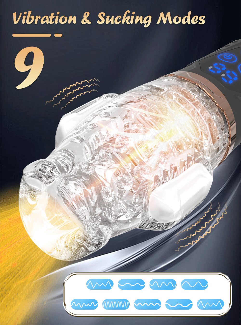 9 Vibrating & 9 Sucking Patterns: Experience the pinnacle of pleasure with our male vibrator, equipped with 9 powerful vibrating and 9 rhythmic sucking patterns. This adult toy offers an array of experiences that cater to your every desire. Whether you prefer gentle pulsations, intense vibrations, or a harmonious combination of both, this male stroker has it all. Its ergonomic design ensures a comfortable grip for extended sessions of uninterrupted ecstasy