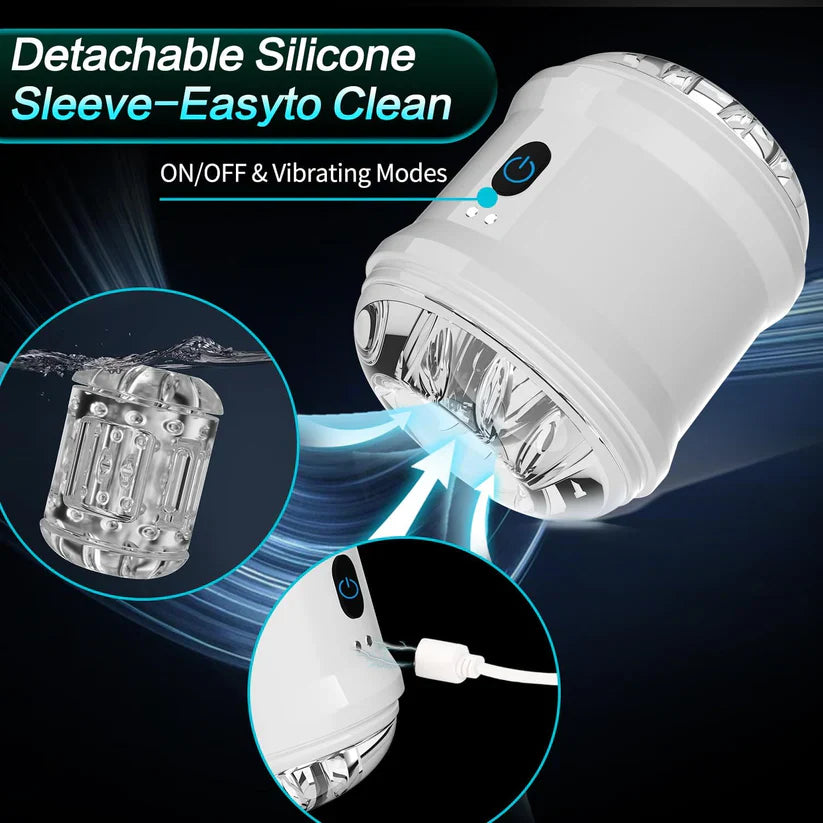 Dual Open-Ended Automatic Male Masturbator【Multifunctional Double Open Ended Men Vibrating Stroker Toy】Without Lid: If you always want longer strokes and deeper penetration, leave both heads open, the masturbation toy can wrap you no matter what size of your penis is. Train and massage every inch of your dick, make you feel real as a lady's mouth; With One Lid: Create a vacuum for your penis with one lid on, a completely different and tighter feeling will stimulate the dick, you can immerse yourself, enjoy the impressive solo masturbation.