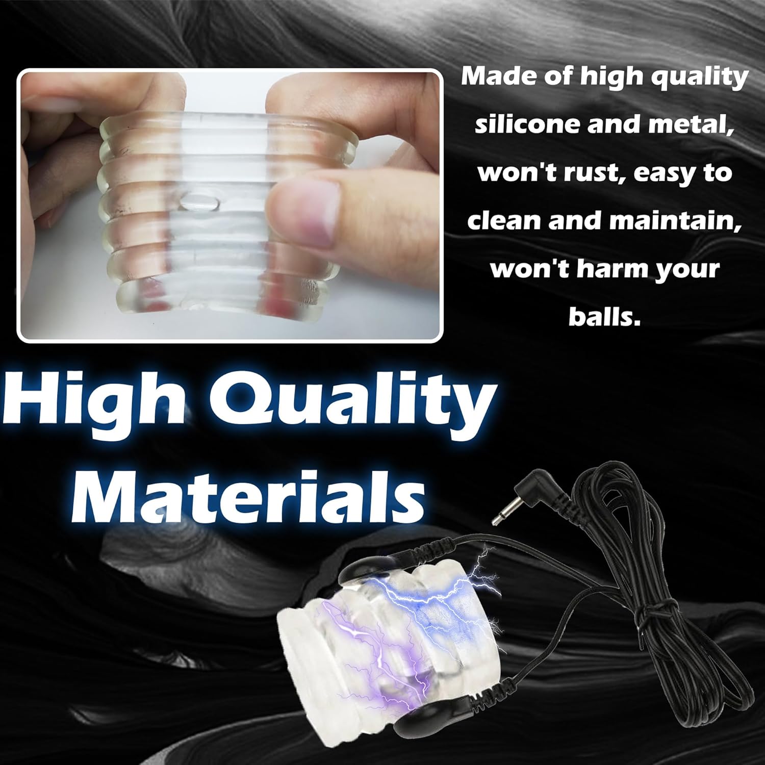 • [4 Modes of electric shock]:Unlike typical scrotal restraints, our testicular restriction locking sperm ring is electrically charged with four modes to choose from: tapping, vibrating, massaging and automatic. Adjust the intensity and speed to suit your rhythm.