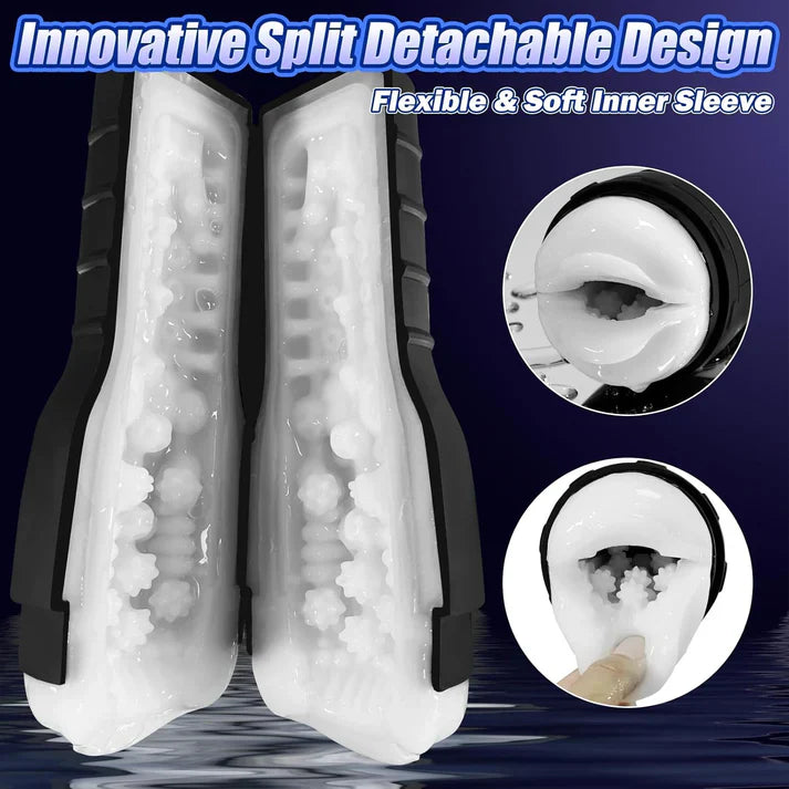 Patented, removable design for easy cleaning – The innovative, patented design of our masturbator is a highlight. With a slight twist, this sex toy for men can be easily split in half. The seamless division exposes every crevice in the inner and outer casing, eliminating hard-to-reach corners.