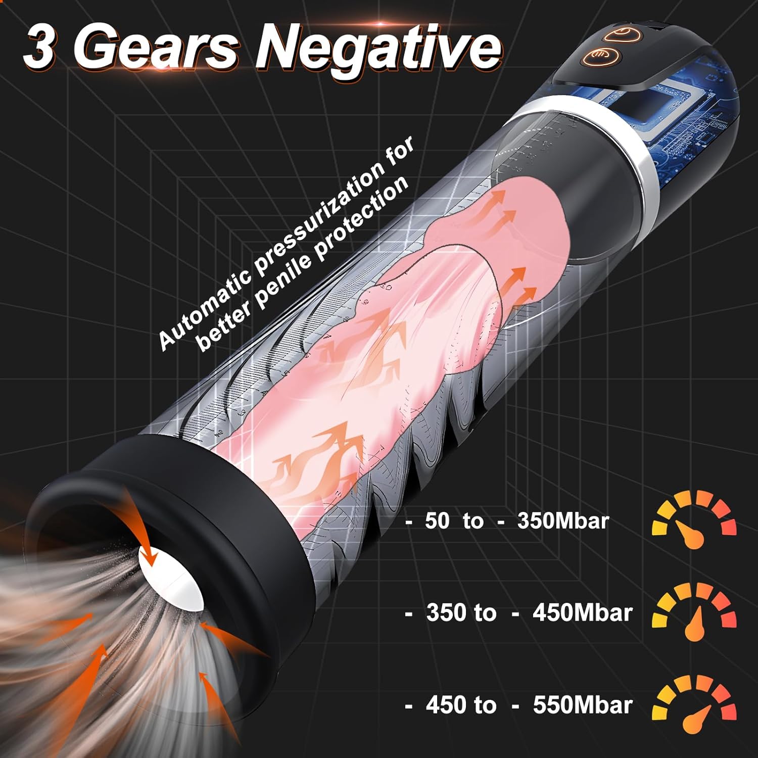 【Unleash the Power】-Our electric penis pump utilizes advanced technology to provide powerful and precise vacuum suction. There are three suction modes,With customizable intensity settings, you have full control over the level of sensation and stimulation, allowing you to tailor your experience to perfection.