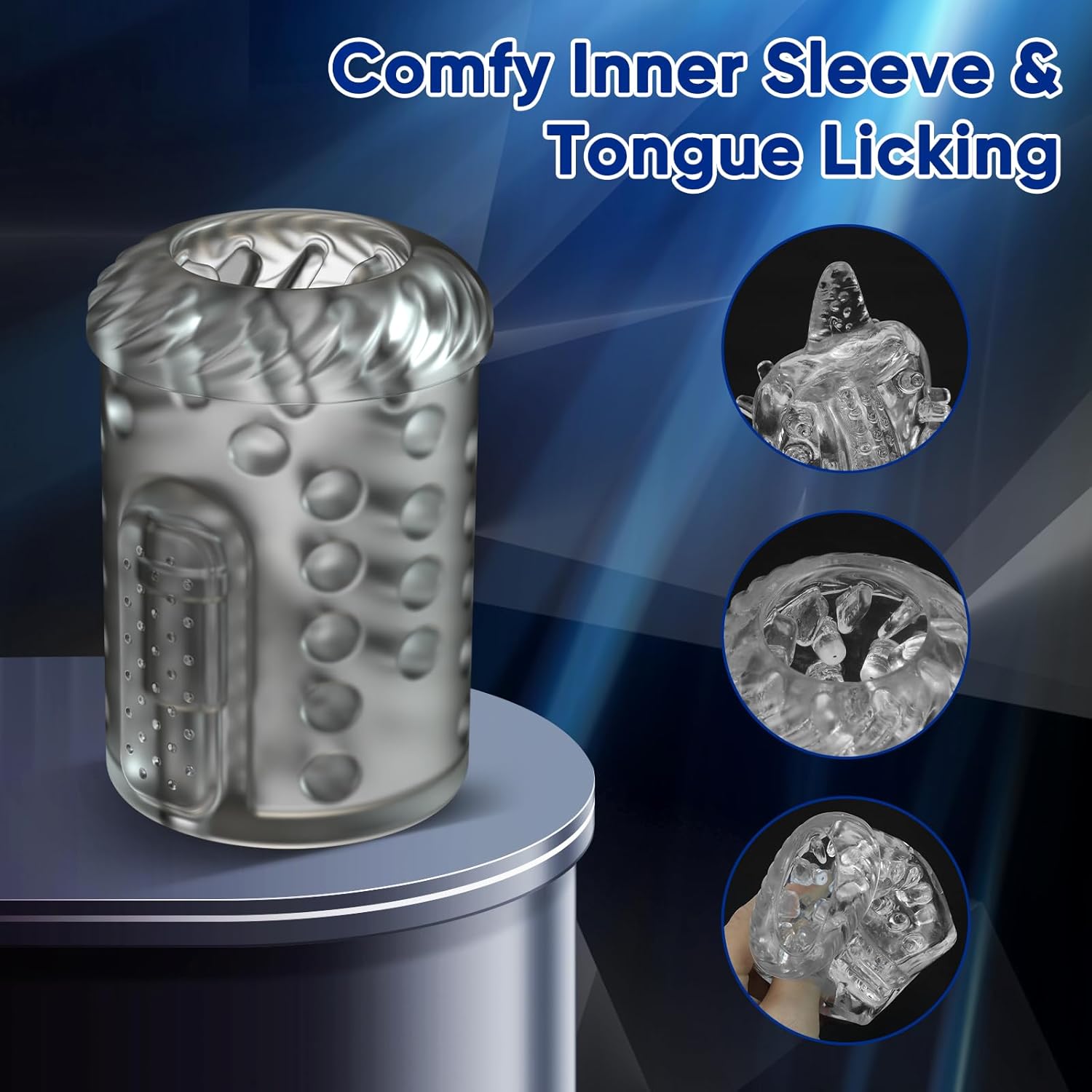 【7 Vibrating Modes 7 Thrusting Rotating Modes】This male masturbator is designed for men to have various masturbating fun. It has 7 thrusting and spinning modes from slow to fast, men will orgasm as the inner cup rubbing on their sensitive glans, besides, there are also 7 different vibrating modes to bring the penis training to a higher level of enjoyment.