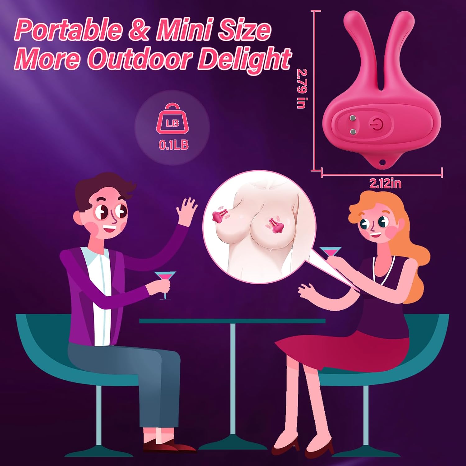 [Mini Rabbit Vibrators for Nipples]: This nipple clamps sex pleasure for women with a rabbit shape is mini and lightweight, making it portable. And the volume is lower than 40db, quieter than most adult sex toys. Wearing this nipple stimulator for a romantic date or carrying them as a best companion for your travel or business trip. While, the material is so stretchy and it can be fit in different nipple sizes. Whether your nipples are large or small, this can give you an exciting play time.