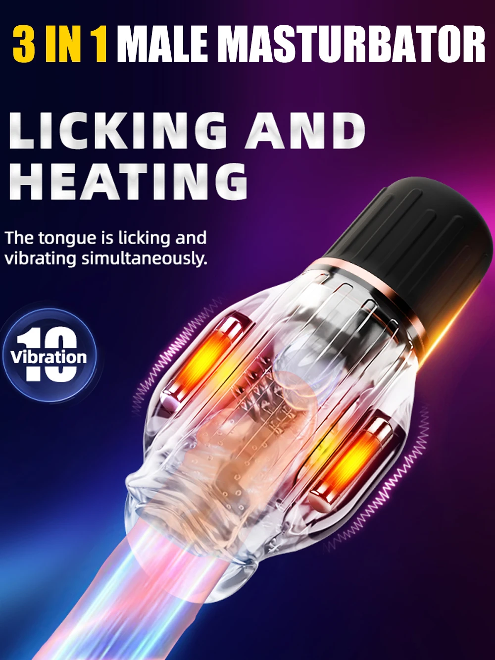 3 IN 1 Penis Trainer Vibrator Masturbator with 10 Vibrating & Licking & Heating Modes