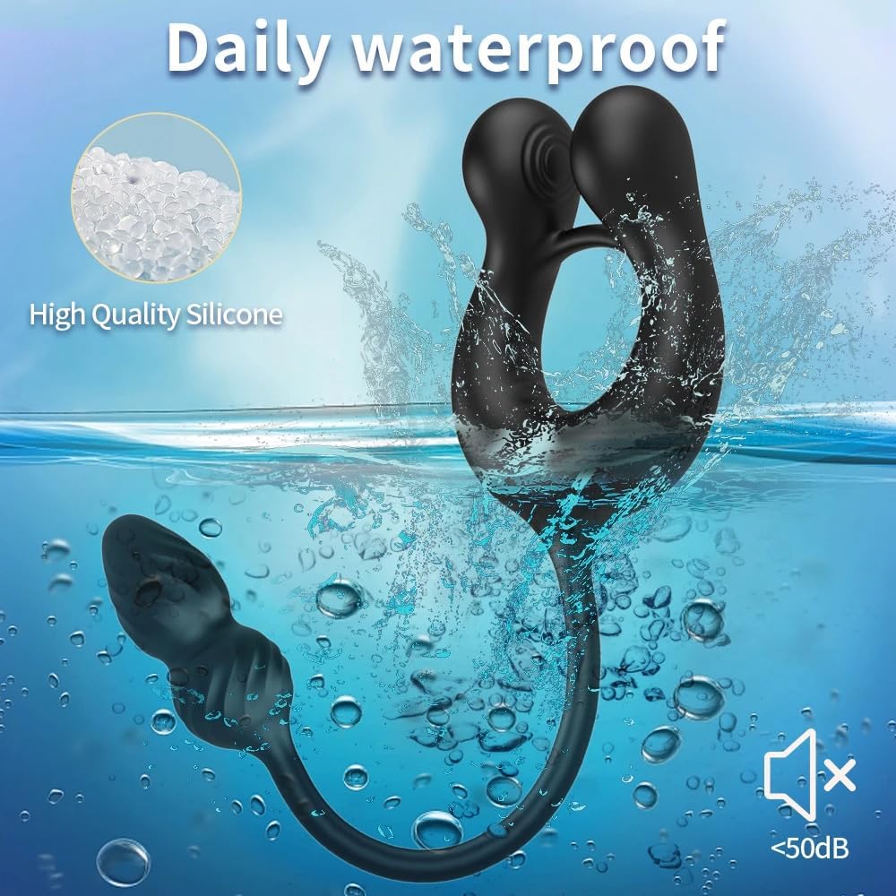 4 IN 1 Anal Vibrator Cock Ring Prostate Massager with 10 Vibration Modes & 3 Motors