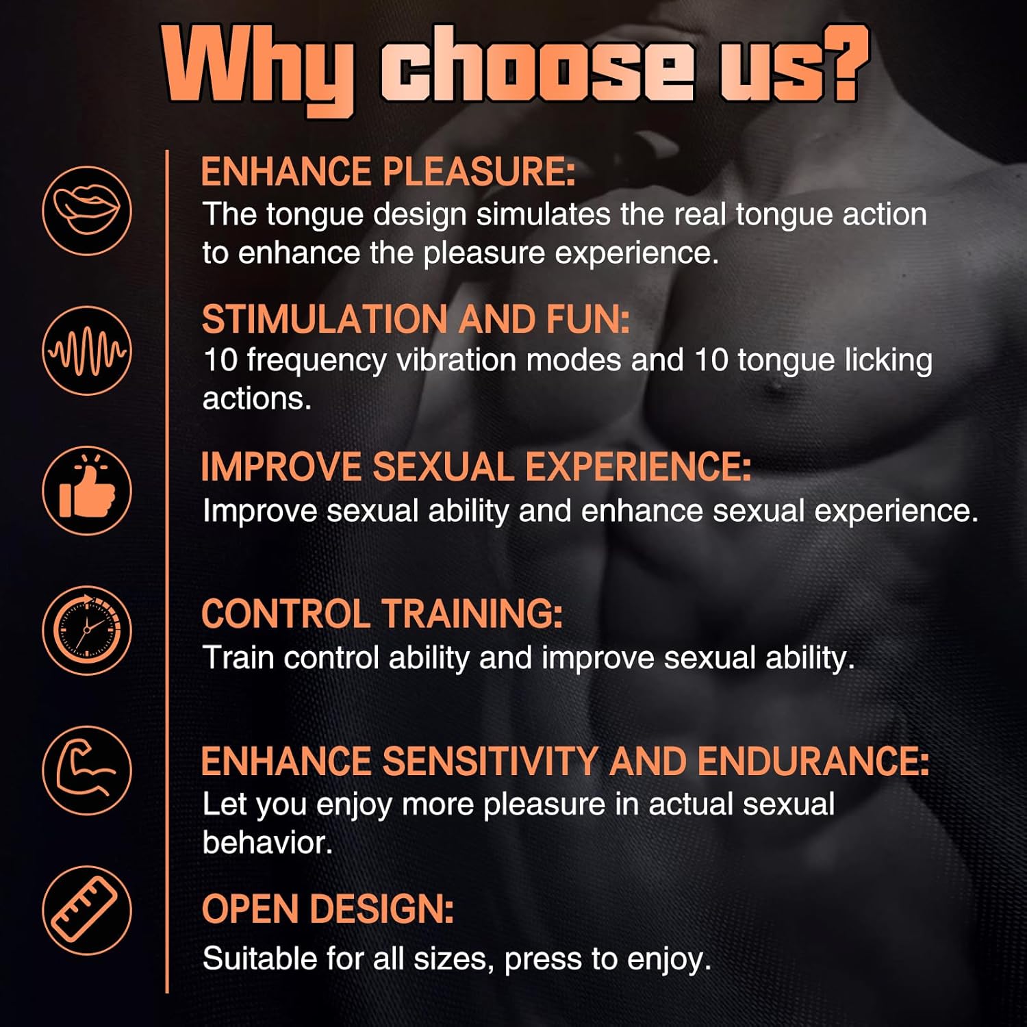 • [4-in-1 Male Masturbator - Penis Trainer, Tongue Licker, Vibrator & Glans Masturbator]: This multifunctional male masturbator combines four powerful functions in one: penis endurance trainer, tongue-licking masturbator, automatic vibrator, and glans stimulation tool. Designed to support stamina training and climax control, it targets the glans, dorsal nerve, and other sensitive zones for a complete male pleasure experience