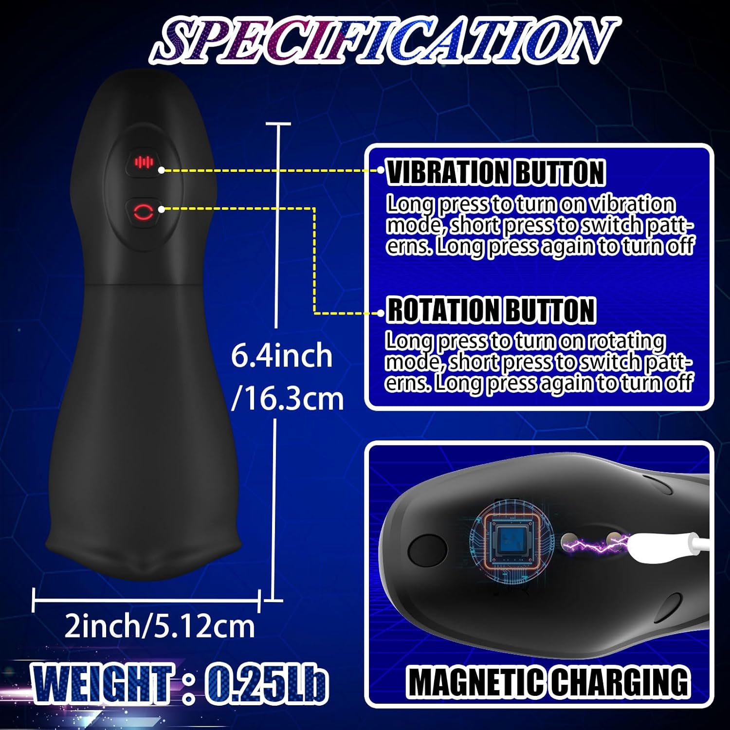 【IPX6 Waterproof & Whisper-Quiet & Magnetic Charge】The male masturbator can be used in all daily waterproof situations, and the entire product can be rinsed directly with water for easier cleaning and care. It features magnetic charging, allowing for faster charging that is less likely to fall off. Additionally, its whisper-quiet operation ensures discreet enjoyment, making it perfect for any setting.