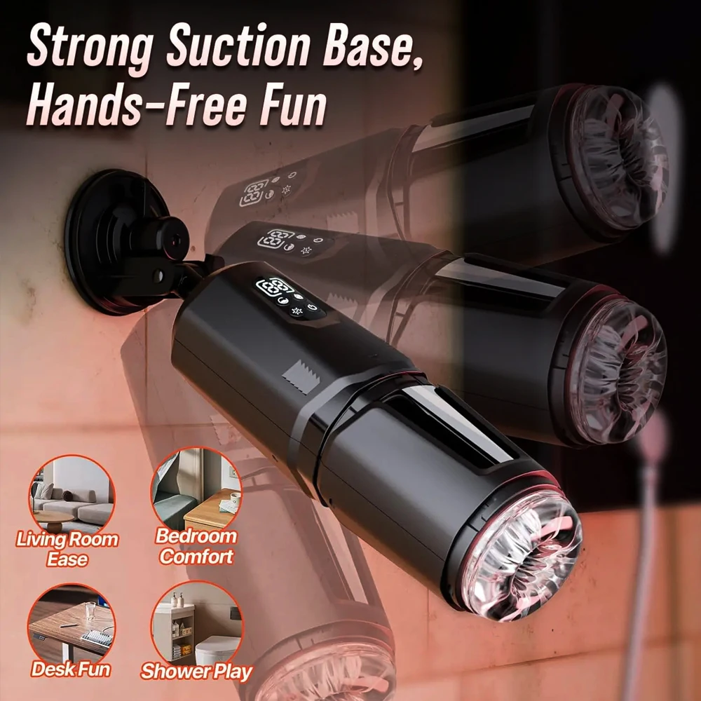 Automatic Male Masturbator – This sex toy for men combines 7 modes for thrusting, rotating, licking, and vibrating, plus a one-click climax that instantly maximizes each function. Designed for a hands-free experience, let our male masturbator do all the work. The LCD display ensures easy operation, while the enhanced 3D textured sleeve provides visual excitement, lifelike sensations, and endless pleasure. Perfect for both beginners and experienced users.