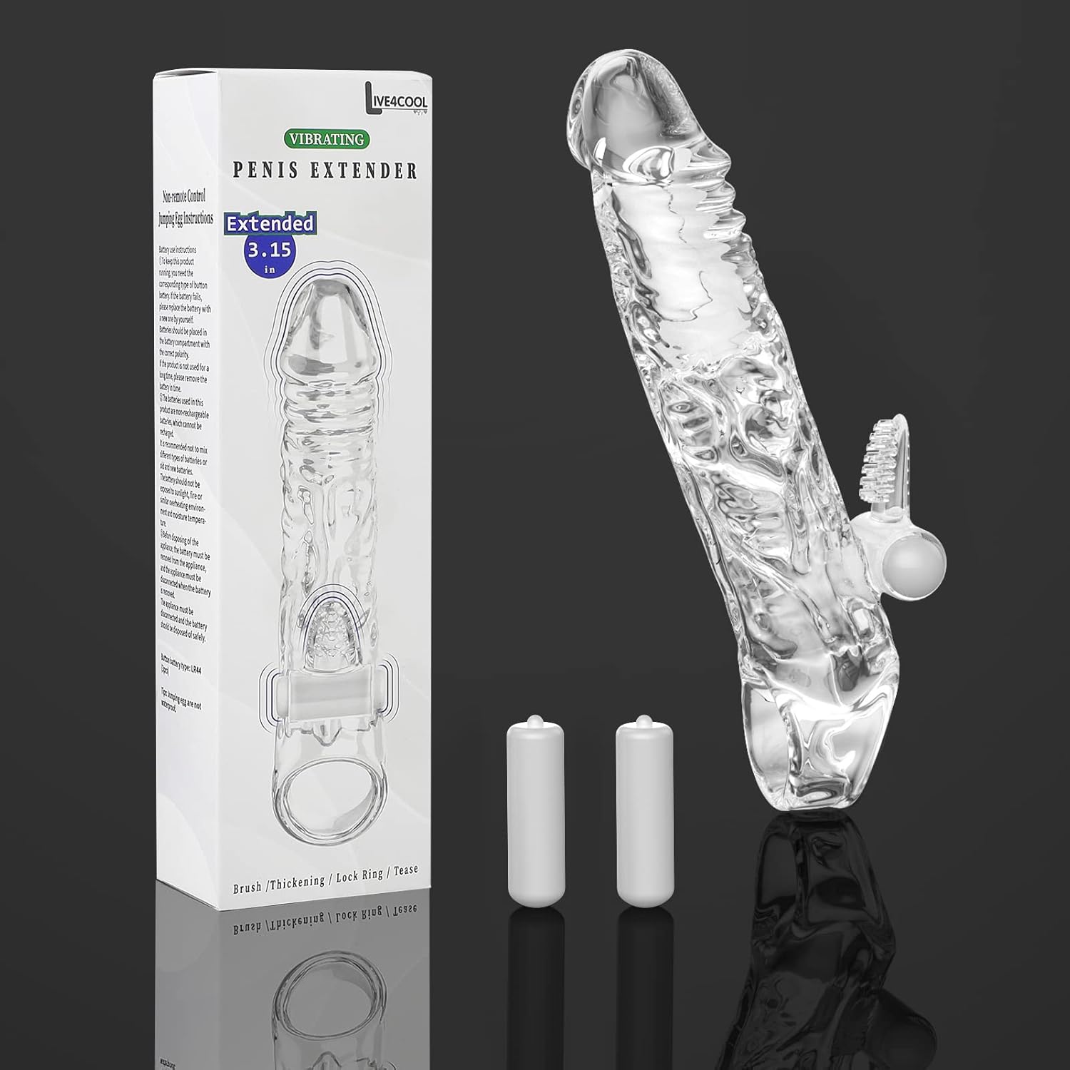 - 【Double Vibrating Sleeve】The penis sleeve is reusable and the product comes with 2 jumping eggs that you can use by inserting them into the sleeve at the glans and brush. The vibrations are designed to quickly stimulate your penis and your partner's G-spot, P-spot and clitoris.