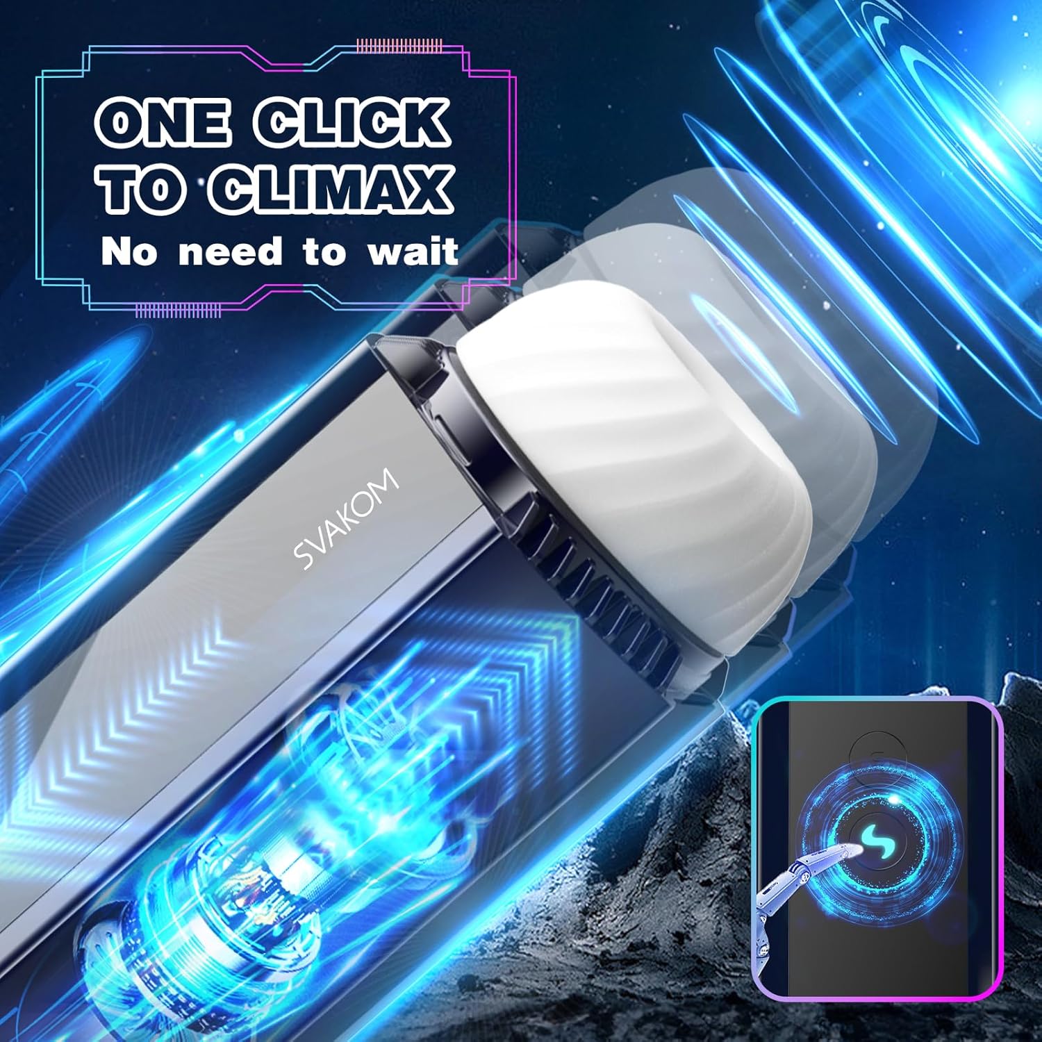 【One-key Climax Male Sex Toy for Ultimate Sensitive Blossom】Feel horny, and want to satisfy your bro immediately, take SVAKOM 2023 upgraded male masturbators immediately, which equips One-click Storm function. Reaching its highest frequency to pleasure you, making you feel like you're in a cloud, give the ultimate sensual sensation. Pair with water-based lube to get the most extreme happiness